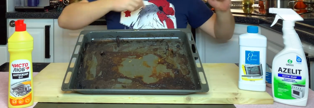Условия простые: противень, недавно подгоревший жир, несколько средств и 15–20 минут ожидания после нанесения. Результат — как чистый лист после промывки. Один из вариантов действительно требовал меньше усилий, чем другие, и в итоге пахло чистотой без лишних запахов.