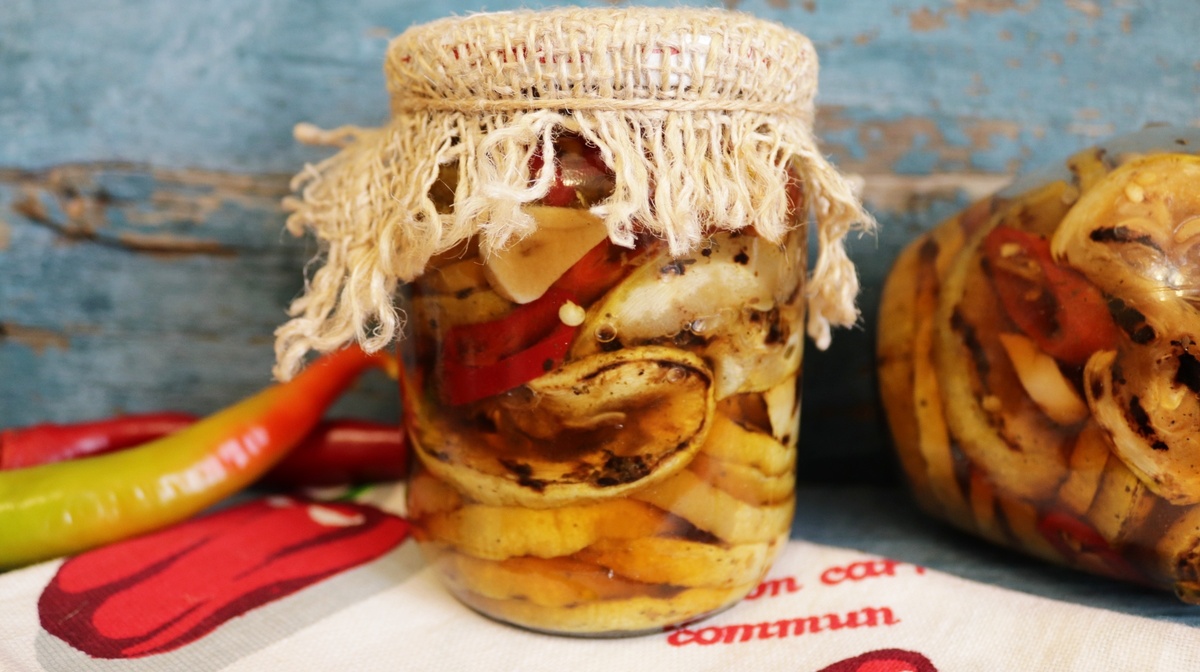 Приготовление занимает около двух часов, если использовать сковороду-гриль. Из указанных ингредиентов получается примерно две банки по поллитра.