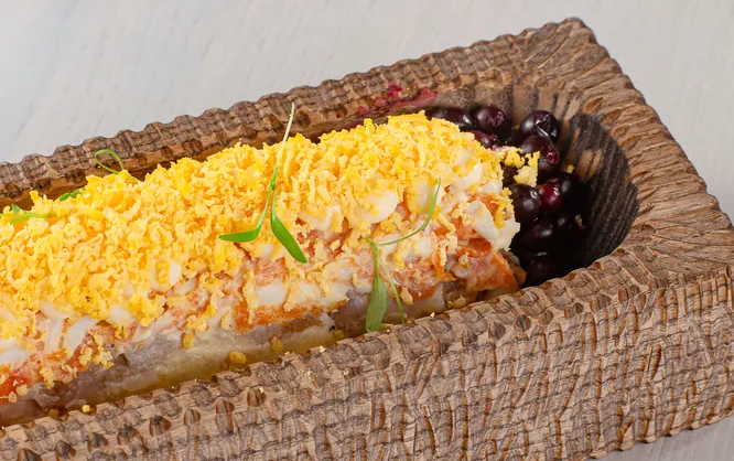 Мимоза с омулем из ресторана #СибирьСибирь