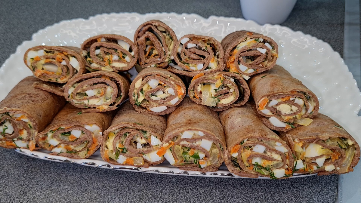 Чтобы собрать блюдо, остывшие блины обмазываются начинкой и сворачиваются в аккуратные трубочки. Получившиеся печеночные угощения отличаются удивительным вкусом, и чувствительность печеночной основы оказывается почти незаметной!