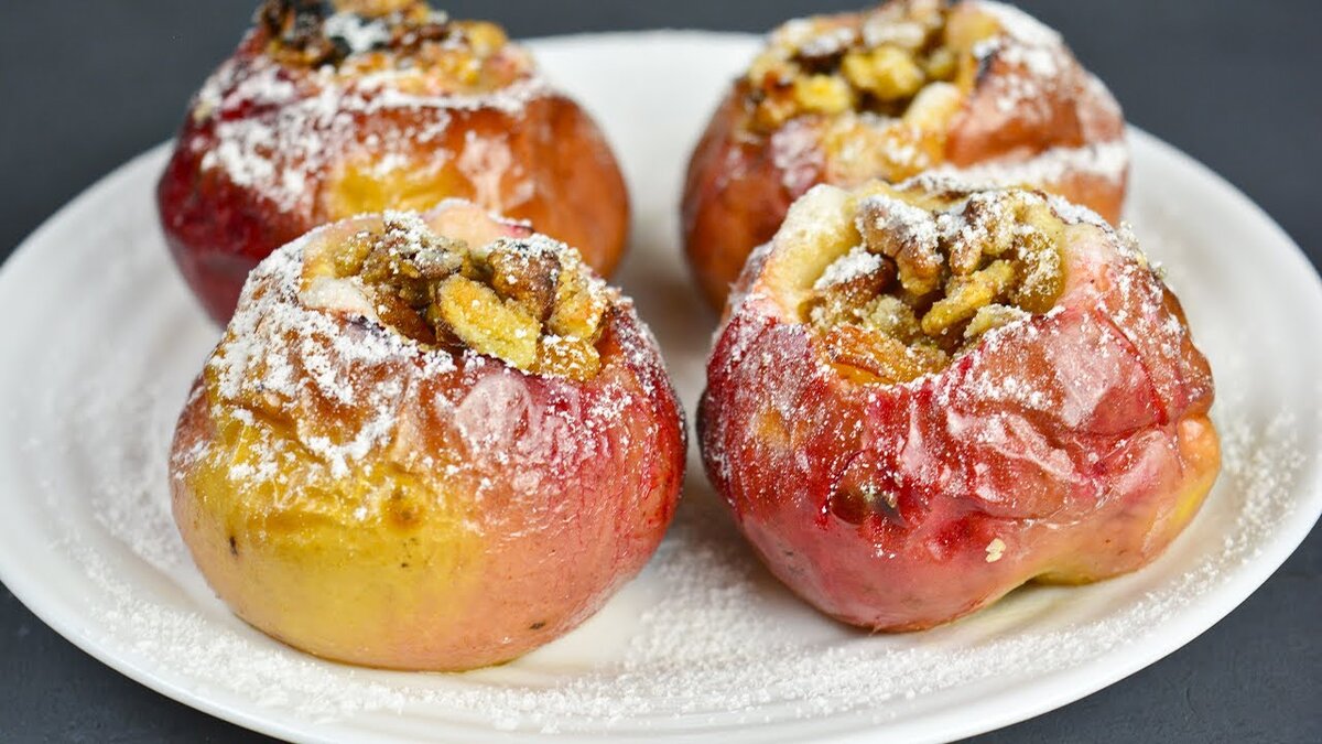 После этого в форму добавляется вода, и десерт отправляется в разогретую до 200 градусов духовку. Готовить нужно около 20 минут, в течение которых яблоки пропитаются сладкой ореховой начинкой и станут мягкими и ароматными.