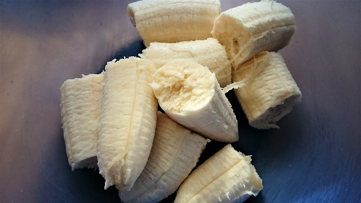 Первым делом бананы нужно нарезать или поломать и поместить в большую миску. Используя блендер, тщательно измельчите их. Затем добавьте сахар, растительное масло, щепотку соли и соду. Чтобы сода равномерно распределилась, лучше развести её в столовой ложке воды перед добавлением.