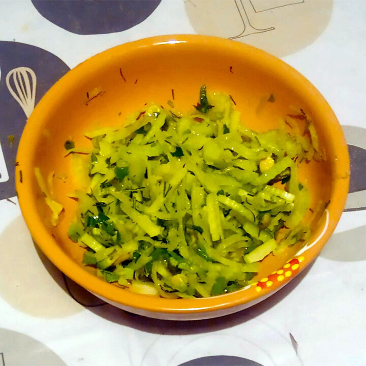 Пропорции ингредиентов можно регулировать по вкусу: сельдерея и дайкона по 100 г, а авокадо немного меньше. Даже без добавления соли салат получается очень вкусным и освежающим.