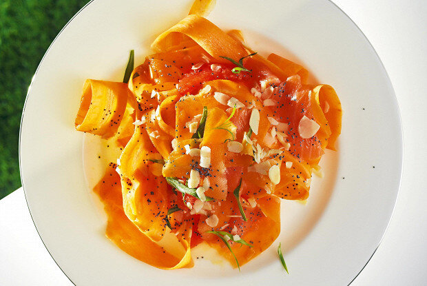 Салат, состоящий из моркови и миндаля, станет ярким акцентом на любом столе. В сочетании со слабосоленым лососем и свежими грейпфрутами, он не только радует глаз, но и дарит неповторимые ощущения вкуса.