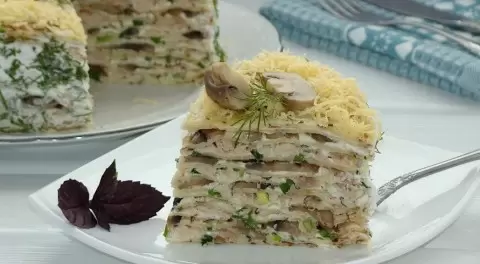 Блинный торт, состоящий из вкуснейших блинов, станет настоящим украшением любого стола. Этот кулинарный шедевр сочетает в себе нежные сырные блины, аппетитное куриное мясо и ароматные грибы, создавая гармонию вкусов. Рецепт был представлен Натальей, одним из читателей www.gastronom.ru.