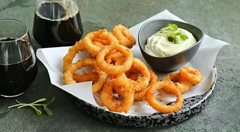 Эти аппетитные кольца можно подавать с вашим любимым соусом или наслаждаться ими в одиночестве. Секрет в том, что они обслуживаются с пикантным васаби-майонезом, что придаст им особую ноту. Луковые кольца идеально подходят для неожиданных гостей или как перекус после долгого дня. Они не только вкусные, но и гораздо дешевле, чем многие другие закуски, такие как обжаренные кальмары.