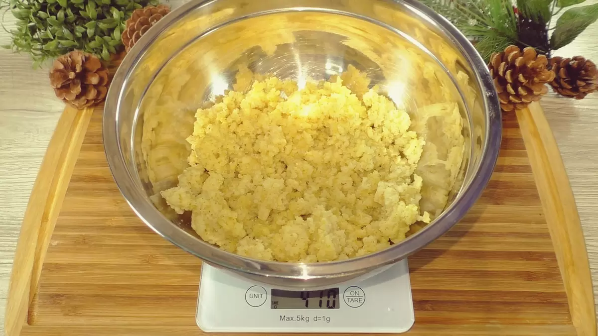Отделить белки от желтков и взбить белки с щепоткой соли до крепкой пены, добавив сахар к вкусу. Остывшую кашу, посолив и добавив желтки, нужно измельчить блендером до однородной массы. Далее добавляются молоко, мука и разрыхлитель. На этапе перемешивания вводятся белки, и добавляется масло. Консистенция должна быть между тестом для блинов и оладий.