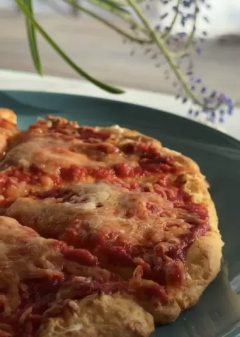 3. Создайте основу пиццы, выложив тесто в форму, и отправьте в разогретую до 180 градусов духовку на 20 минут. Ваша основа должна подрумяниться и стать легкой и хрустящей.