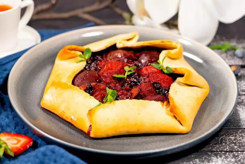 Хотите добавить в повседневное меню яркие вкусы лета? Этот открытый пирог с ягодной начинкой станет идеальным выбором для любителей изысканных кулинарных изделий. Наполненный сладкими ягодами, такими как клубника, смородина, малина и слива, этот пирог подарит вам настоящую гастрономическую радость.