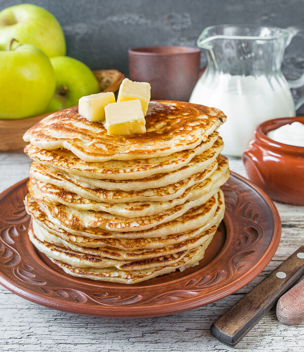 - Дрожжевые блины: Толстые и сытные, они традиционно пекутся на Руси. В состав их теста обычно входят пшеничная и гречневая мука, что придает интересный вкус.