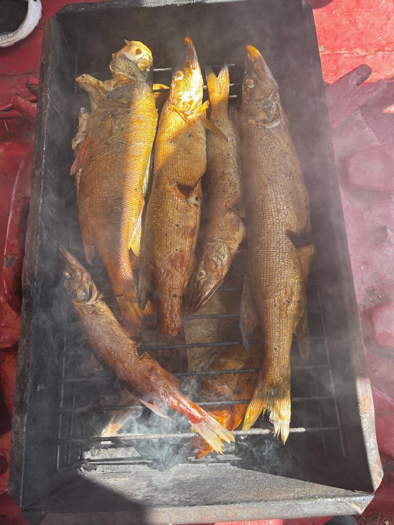 И вот, наконец, дружная компания собралась за столом с ароматной копчёной рыбой, готовой радовать всех своим непревзойдённым вкусом.