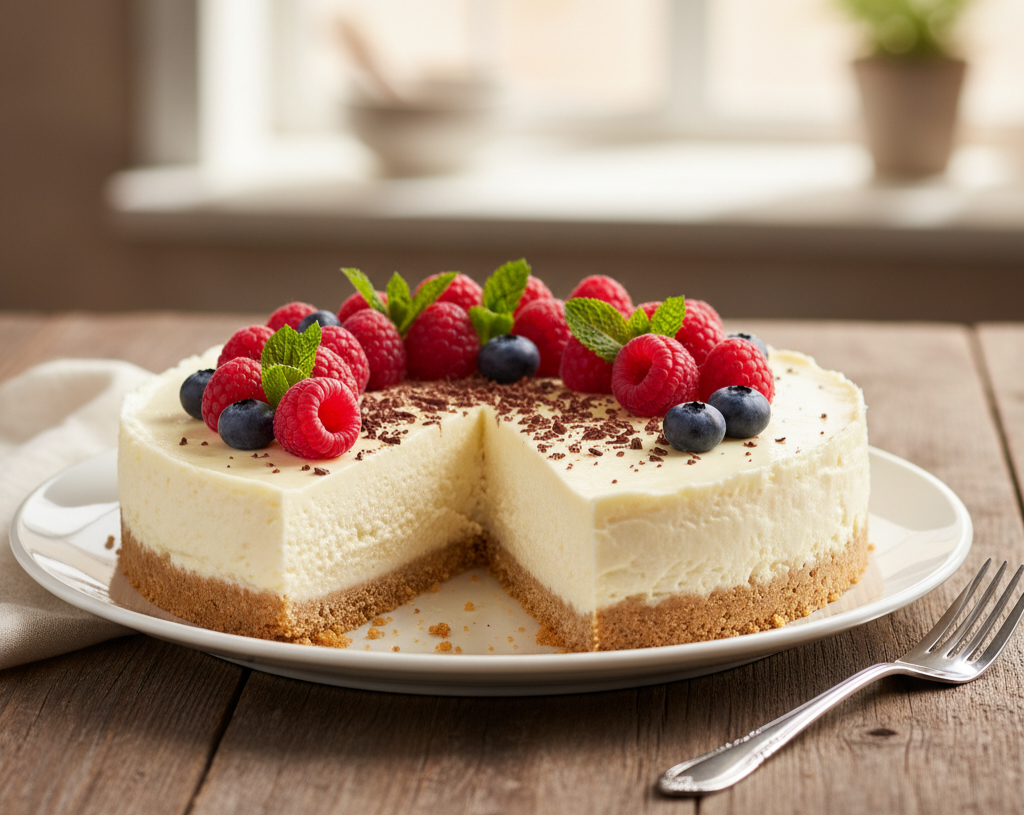 Этот чизкейк без выпечки — классика, которая не требует сложных манипуляций на кухне. Сочетание творожного сыра и пышных сливок создаёт невероятно нежную текстуру, а желатин делает десерт устойчивым и легко формируемым.