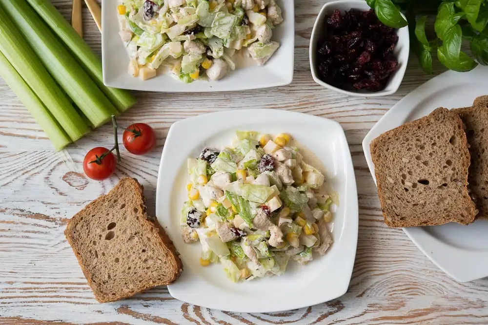 Сочный салат с сельдереем, курицей и изюмом