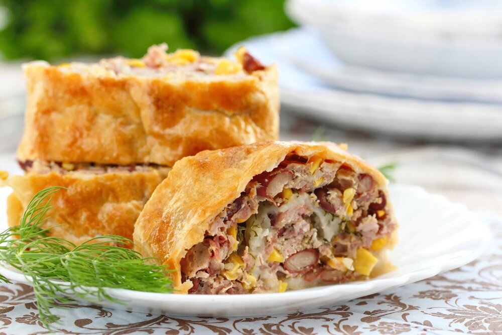 Рулет из слоеного теста с мясной начинкой: идеальный перекус в любое время