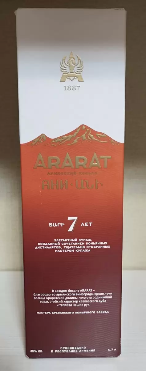 Коньяк «Арарат Ани» — это уникальный напиток, имеющий минимальный возраст выдержки 7 лет и крепость 40%. Его производят из лучших сортов винограда, таких как Кангун, Ркацители, Воскеат и Бананц. Виноград собирается вручную с виноградников, расположенных в живописной Араратской долине.
