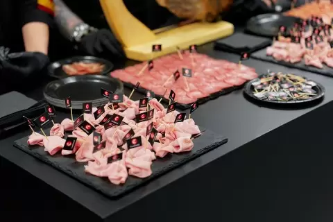 Яркой частью винного события стало участие испанского бренда Casademont, который представил свою премиальную мясную продукцию. На стенде компании были выставлены основные позиции: хамон серрано, чоризо, палета косида, мортадела и салями, которые стали отличным компаньоном для разнообразных вин.