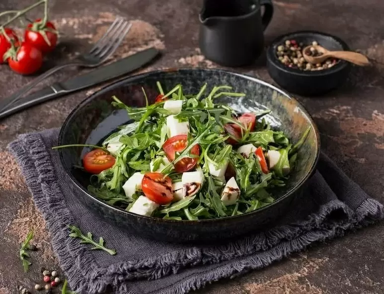 Идеальный вариант для быстрой трапезы – свежий и хрустящий салат, который легко приготовить. Он не только радует глаз своими яркими цветами, но и сочетает в себе потрясающие вкусы. Главные ингредиенты в этом блюде – руккола, неповторимая моцарелла и сладкие помидоры черри, которые гармонично дополняются бальзамическим соусом, придающим всему блюду кисло-сладкую нотку.