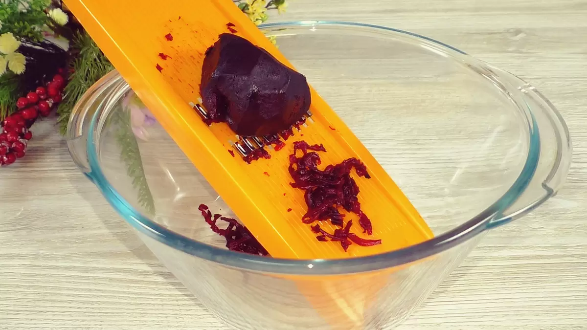 Первоначально свёклу необходимо отварить, запечь либо приготовить в микроволновке. После этого её нужно остудить и очистить от кожицы. Затем свёклу следует нарезать: либо пластинками, либо брусочками, хотя можно также натереть на крупной тёрке, что ускорит время маринования до примерно одного часа.