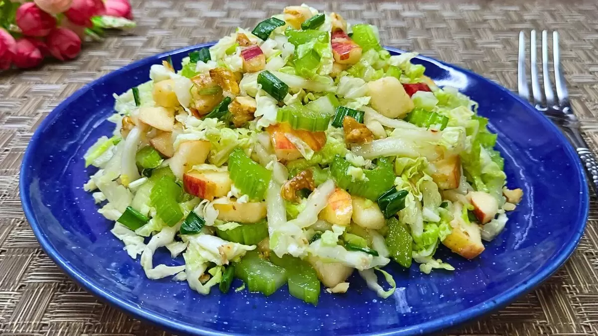 С набегом весеннего тепла все чаще хочется чего-то легкого и витаминного. Этот салат из пекинской капусты покоряет своим свежим вкусом и хрустящей текстурой, создавая идеальное сочетание сладких и соленых ноток с ореховой искоркой. Он прекрасно сочетается с мясными блюдами, рыбой или служит самостоятельным легким ужином.