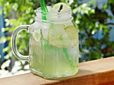 Для подачи напитка нужно нарезать лайм и нарезать несколько стеблей чабреца. В стаканах, наполненных льдом, разливают сироп, добавляют дольки лайма и по желанию веточки чабреца. Завершают создание идеального напитка, налив газированную воду до самой верху и сразу подают, наслаждаясь непревзойдённым вкусом.