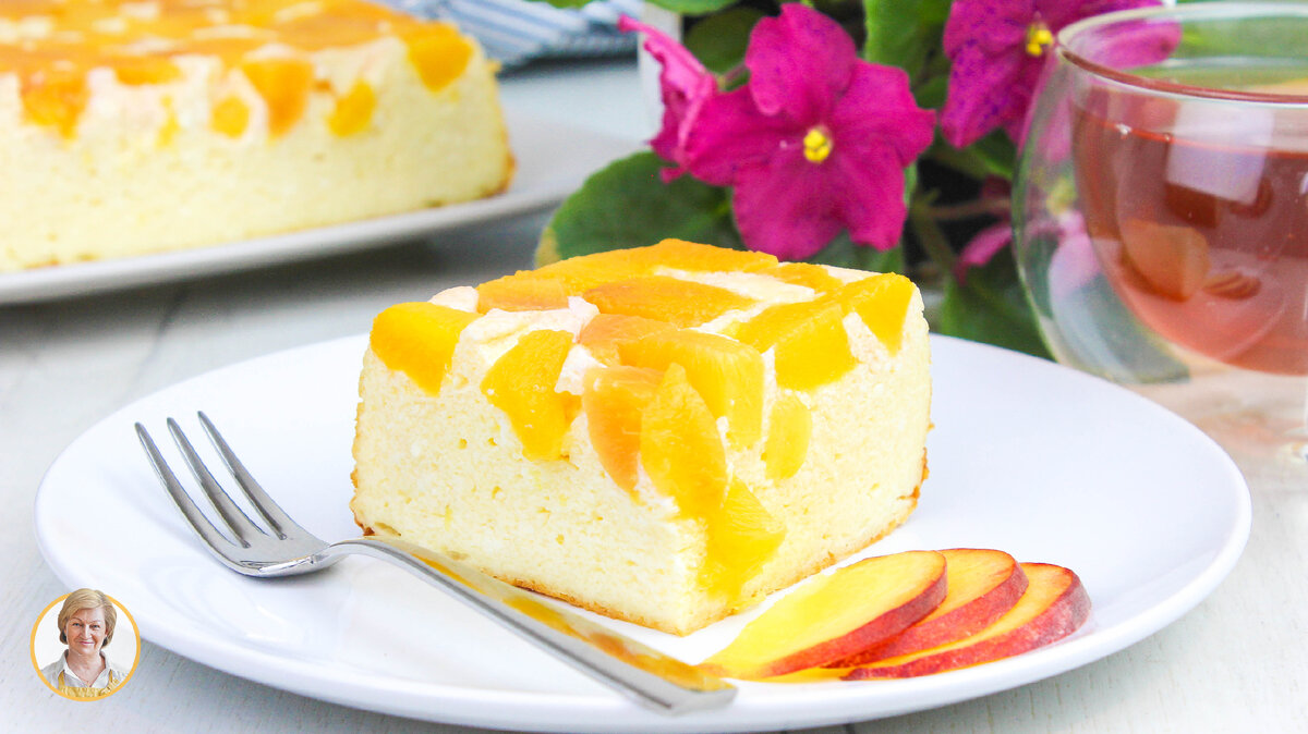 После выпекания запеканка должна остыть в форме. Это упростит ее извлечение и подчеркнет текстуру. Творожная запеканка с персиками готова к подаче. Приятного аппетита!